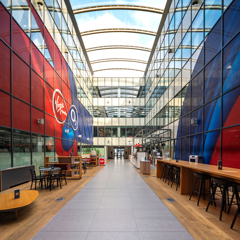 The available space is arranged over ground and three upper floors – configured around a large central atrium.