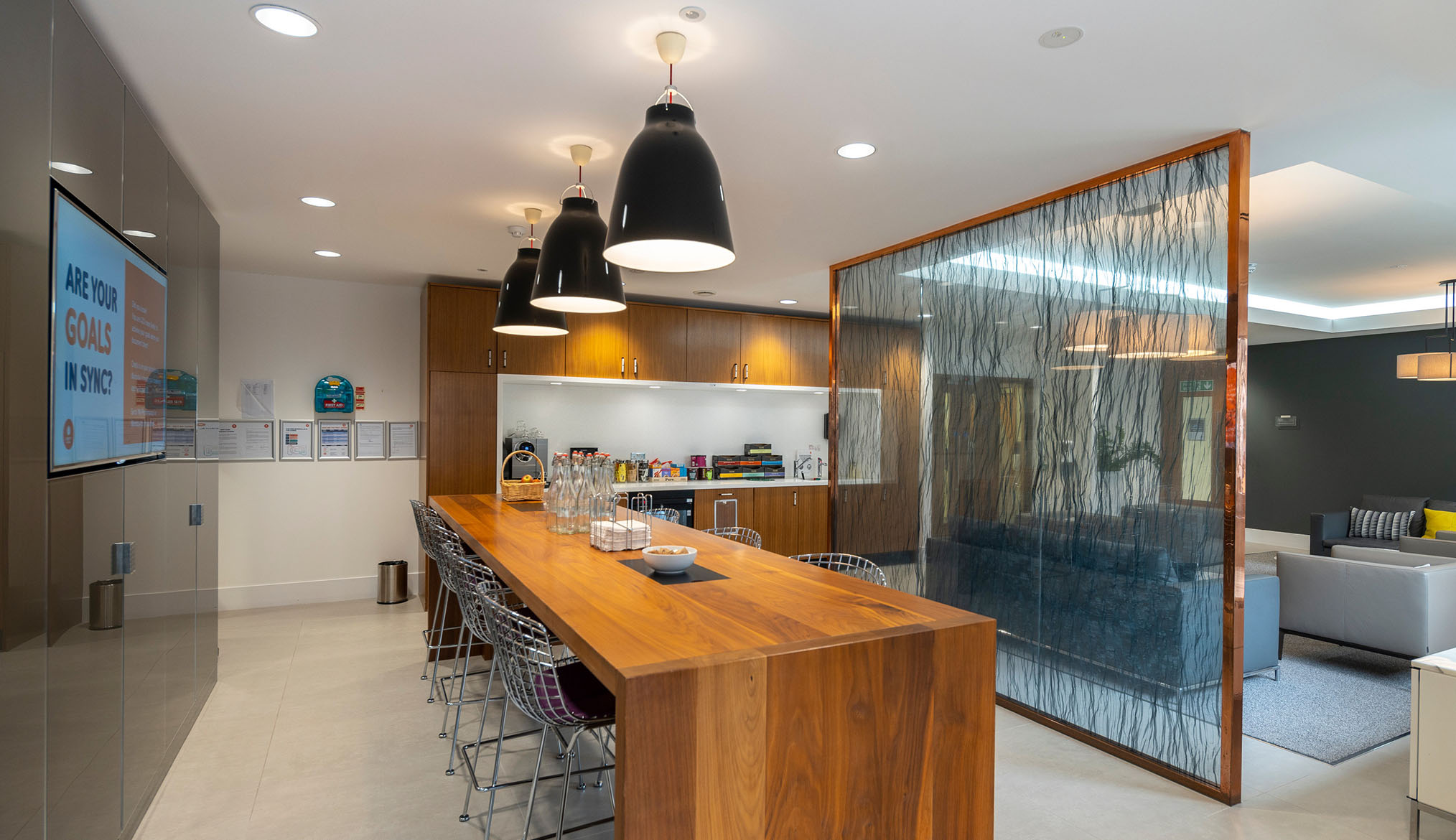 The daylight flooded ground floor atrium space also offers an opportunity for an onsite café, breakout space and communal kitchen.